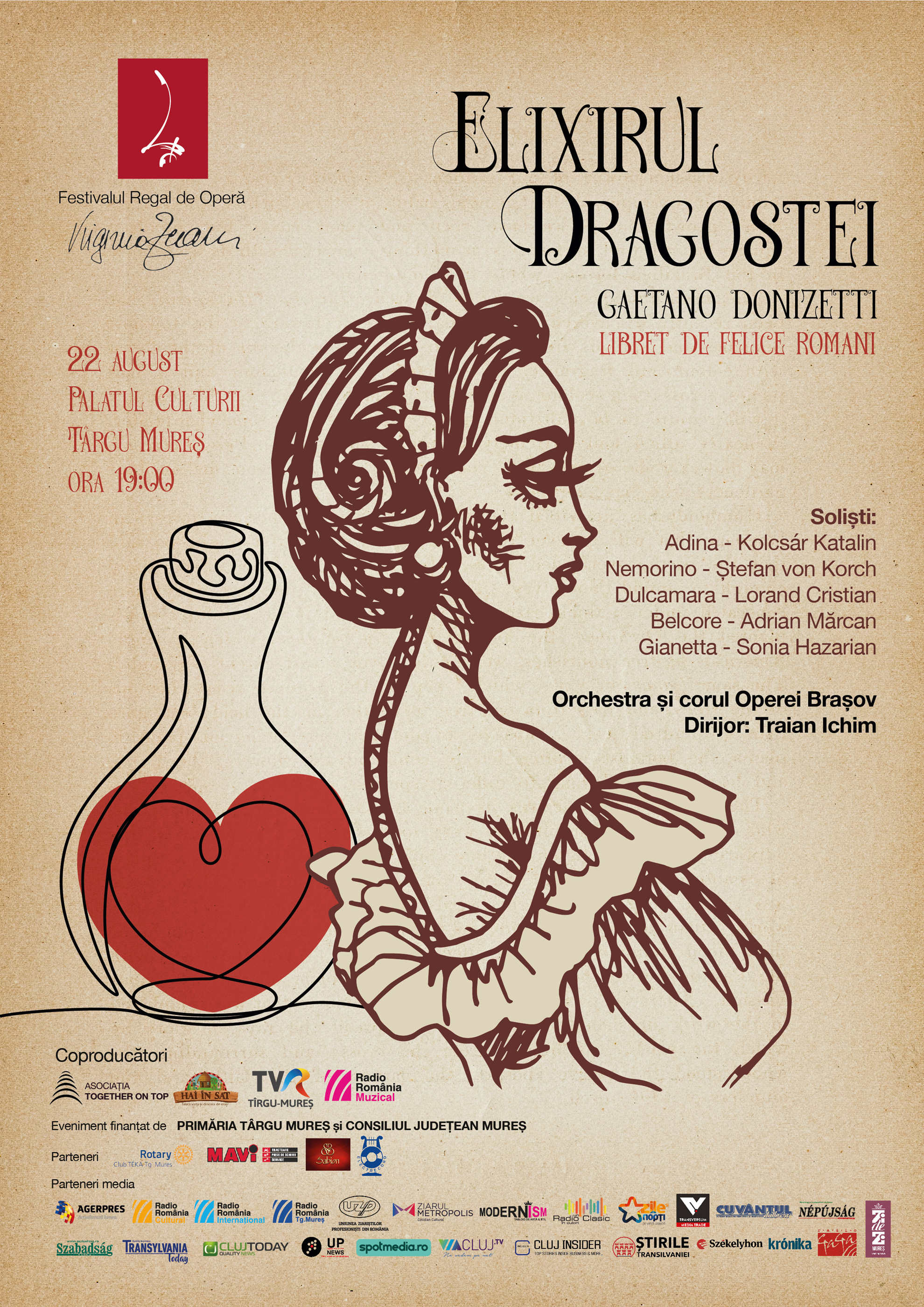 Partitura fermecătoare a lui Gaetano Donizetti, o lucrare deopotrivă comică și sentimentală, vorbește, pe un ton mereu contemporan, despre puritatea sentimentelor și despre parcursul lor sinuos printre nenumărate umbre, de la gelozie și naivitate, la magie, iluzii, bani şi orgolii.